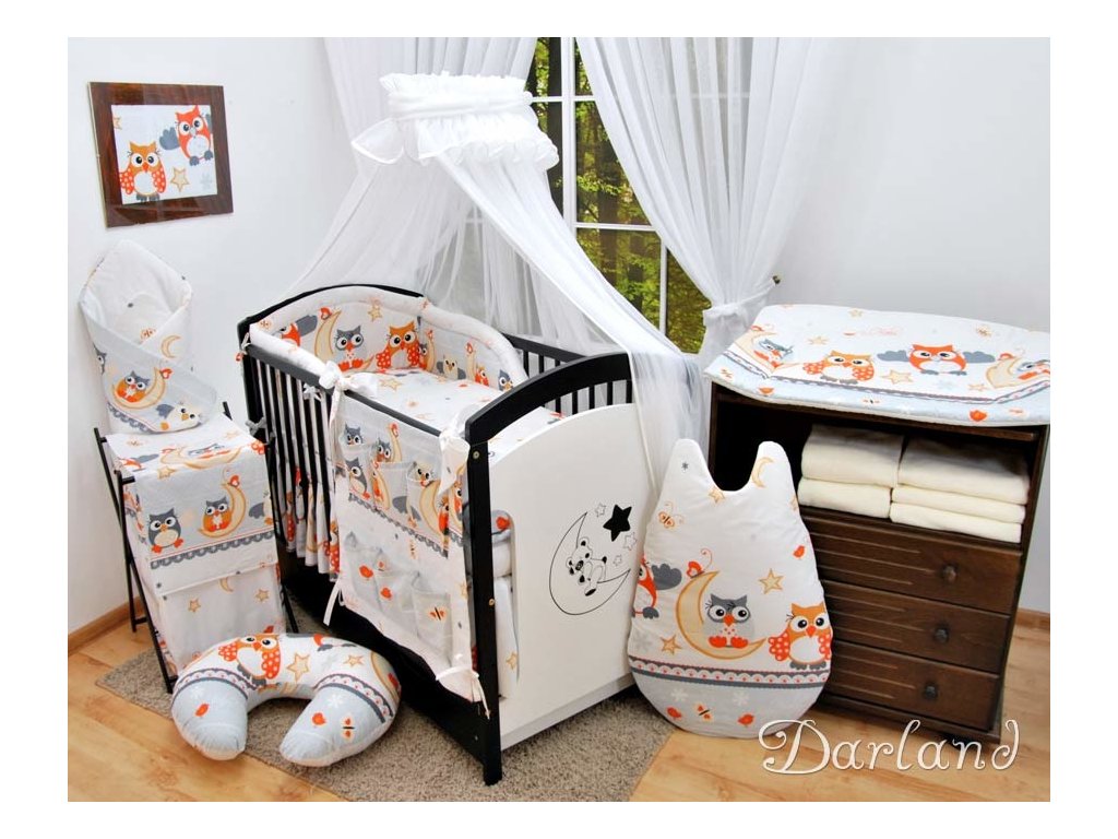 5-dílná sada do postýlky s nebesy Sovičky šedé