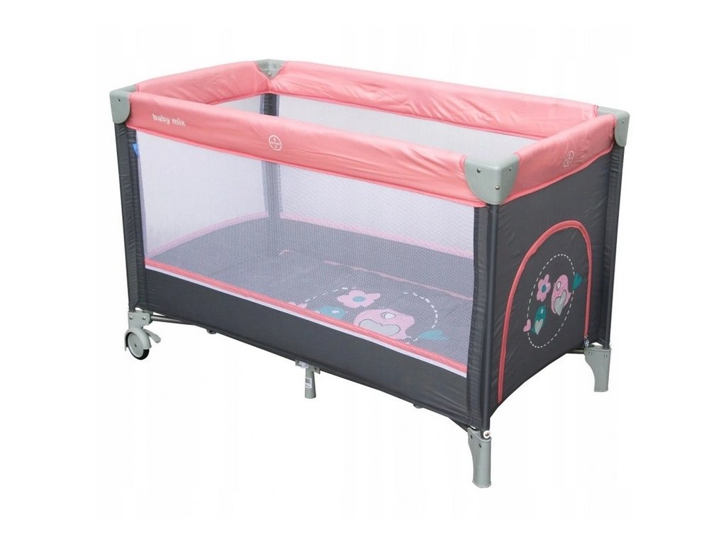 Tato cestovní postýlka značky Baby Mix je vyrobena z kvalitních a odolných materiálů, které zajistí bezpečnost a stabilitu vašeho dítěte během spánku. Dezén s roztomilými ptáčky v růžových barvách dodává postýlce veselý vzhled, který pobaví vaše dítě.