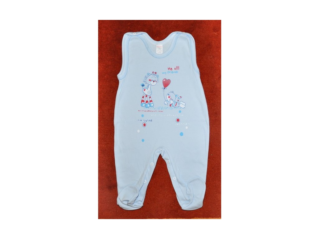 Bavlněné dupačky Hello my friends kočka se srdíčkem modré vel.68