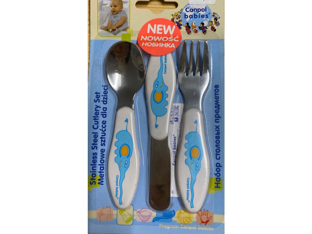 Speciálně tvarovaný dětský kovový příbor (nůž, vidlička, lžička) je určen dětem, které se učí samy jíst. Zaoblené tvary nedráždí cilivé dětské dásně a jsou pro dítě bezpečné. Příbor je vyroben z kvalitní nerezavějící oceli. Doporučujeme pro děti starší 18-ti měsíců.