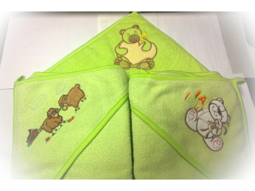 Dětská osuška 90x90 z termofroté s výš. Medvidka srdce zelená
