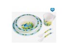 Kojenecké láhve, hrníčky, misky, plastové talíře, kojenecké příbory, bryndáky - vše nezbytné pro pohodové krmení dítěte.