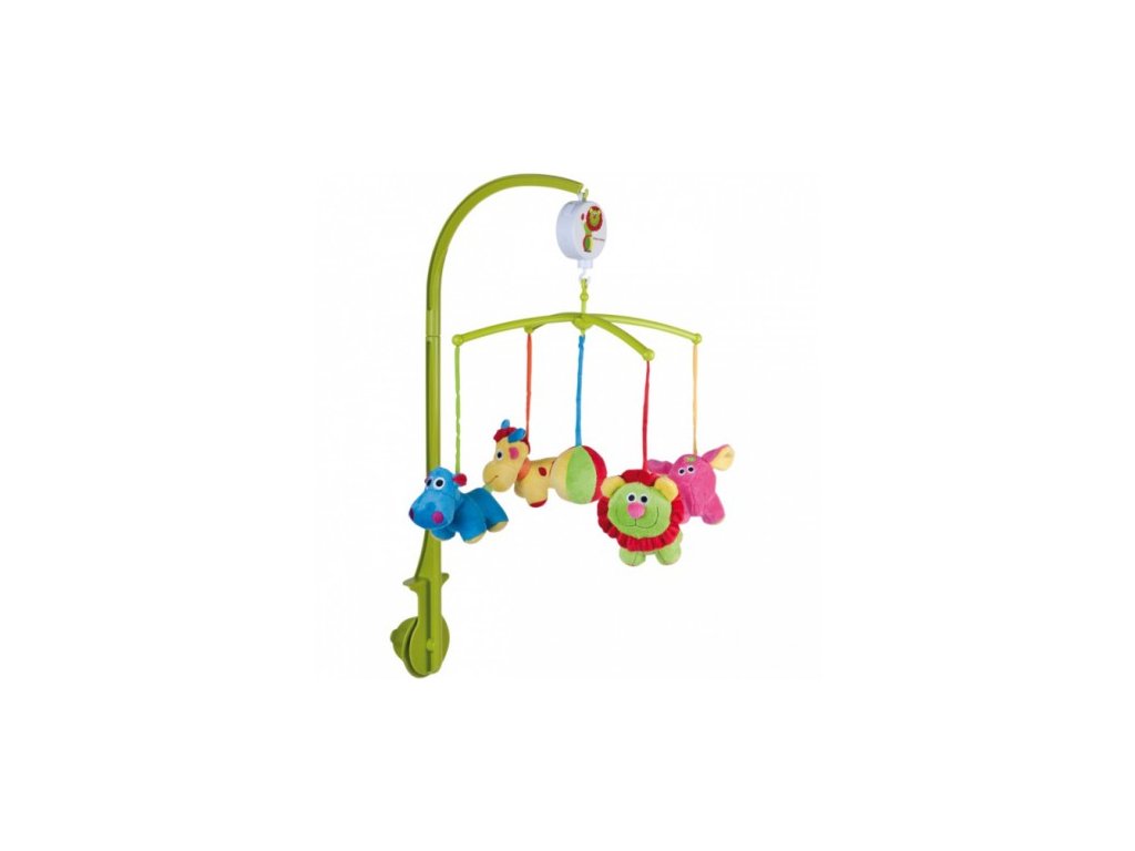 Plyšový kolotoč je určen nejmenším dětem, které se ještě samy nepohybují. Hračky se pohybují, melodie dítě uklidní a usnadňuje jeho usínání.