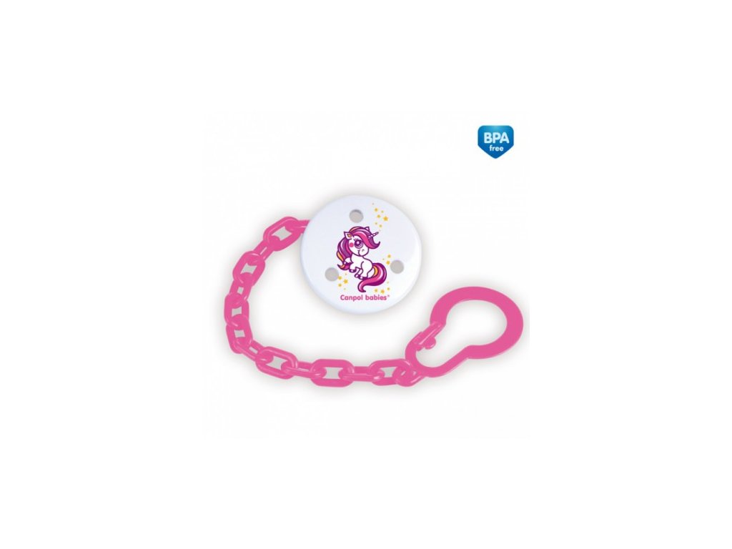 Řetízek obsahuje praktický klip, který umožňuje pevné a stabilní připevnění k oděvu dítěte a chrání šidítko před ušpiněním nebo ztrátou.